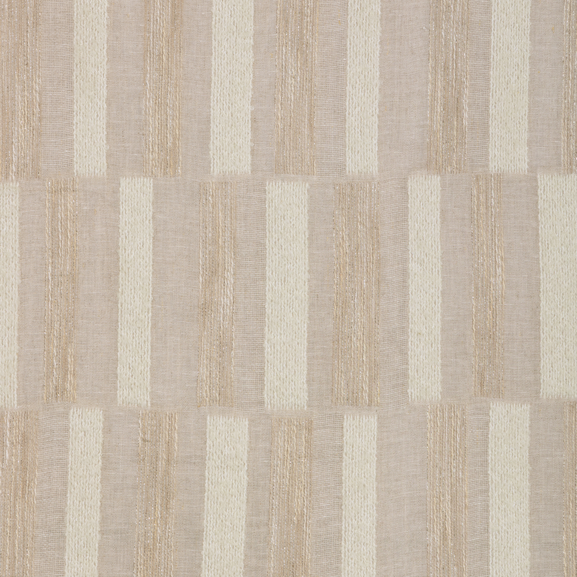 This luxurious double-width sheer reveals broad broken stripes of fluffy wool boucle alternating with bands of lurex-wrapped linen. The effect is both earthy and glamorous all at once. The linen base allows softened light to pass through, while the boucle absorbs light and the lurex reflects it to gorgeous effect.