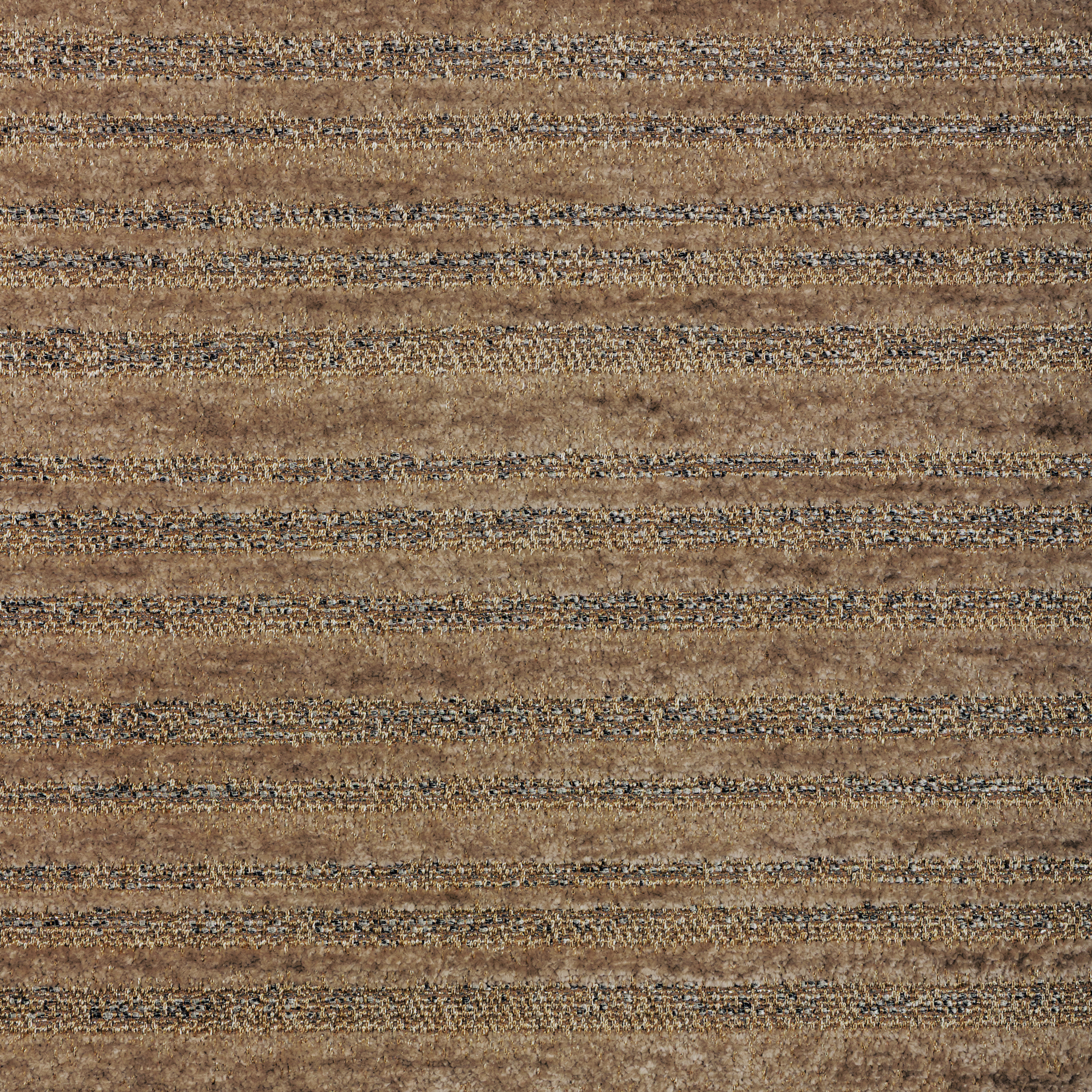 Horizontal stripes, rendered in long pile chenille, create the dreamy, tactile surface of this multipurpose weave. Between the stripes, fancy shoelace and metallic yarns add texture and captivating sheen. A subtle nod to Mid-Century weaving that feels elegant and uber-relevant today.
