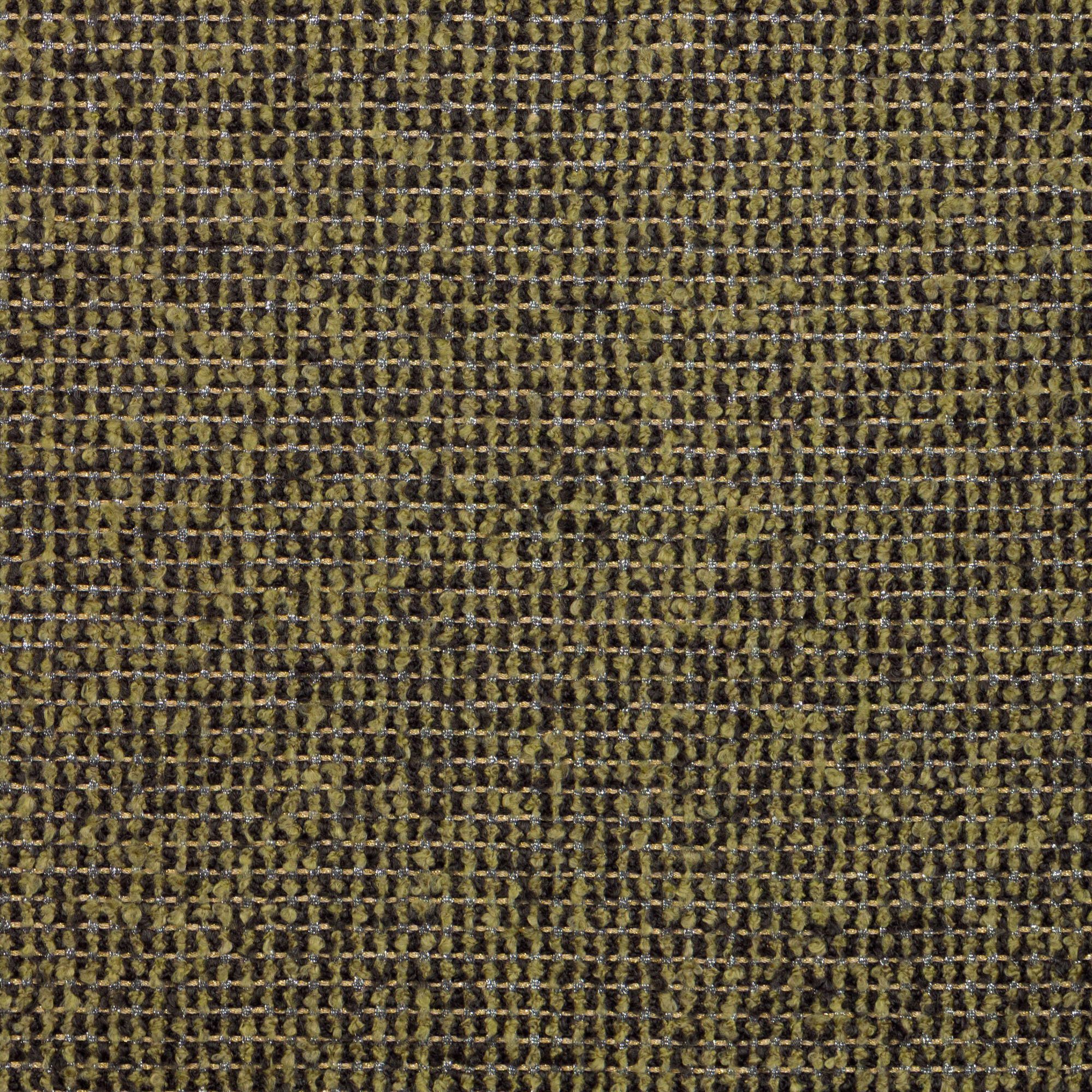 Plush boucle works alongside specialty metallic "shoelace" style yarns to create a glamorous upholstery-weight check. The specialty yarns necessitate hand-warping of the weaving looms, a step that underscores the unique artisanal nature of this sophisticated weave.