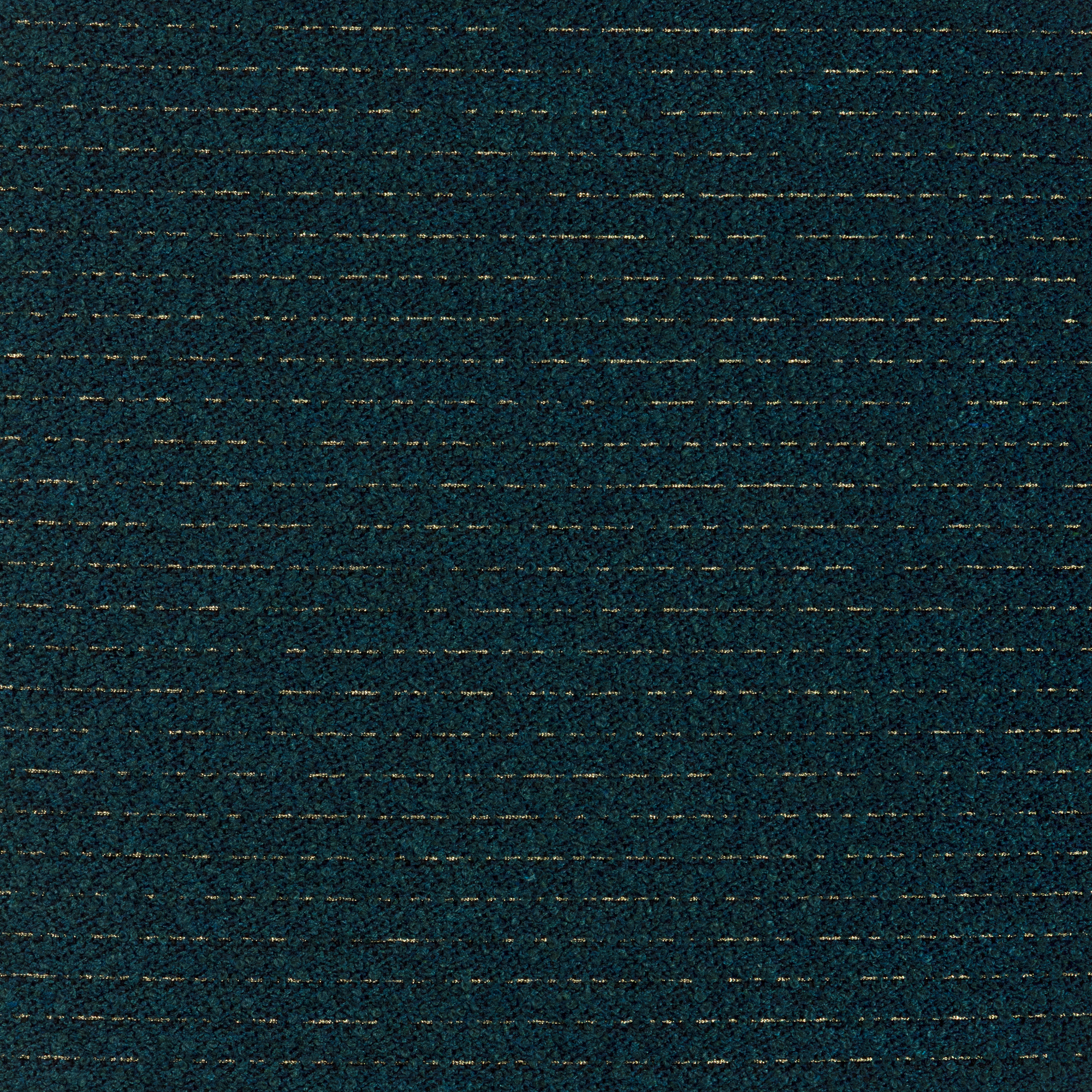 Wide bands of thick boucle are punctuated at regular intervals by thin horizontals of metallic yarn in this upholstery-weight foundation. The characteristic loopy tufts of the boucle serve to both hide and reveal soft shimmer. The whole can be rotated to create vertical striping on furniture as may be desired.