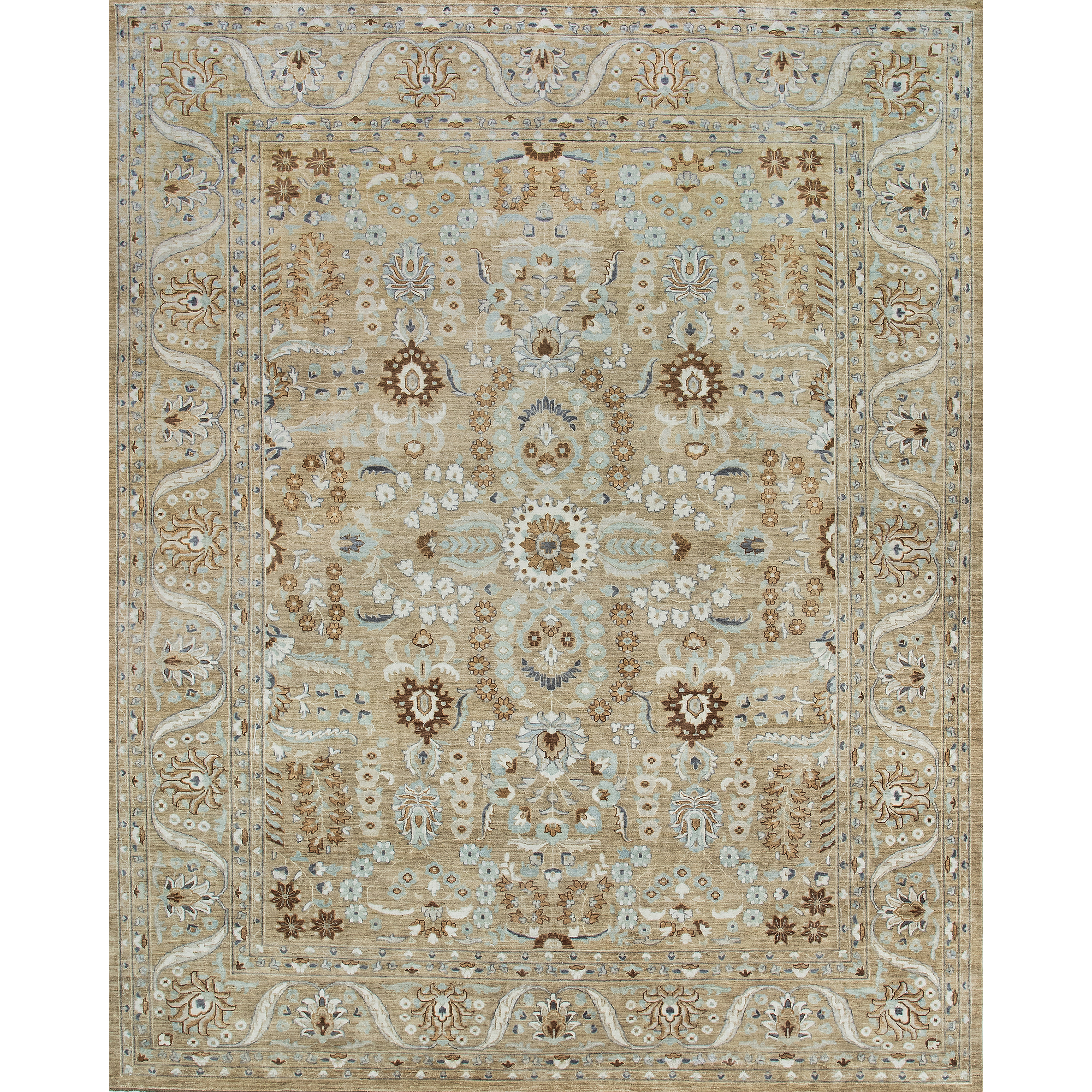Hand knotted from 100% fine wool, the Kensington Collection heirloom rugs feature unique designs in sophisticated, complex colors that are brought to a high luster through an intense washing process. Although not an in stock program, rugs are continuously in production in standard sizes, lead-times will vary from in stock to 28 weeks. Inquire within for custom size rug production.