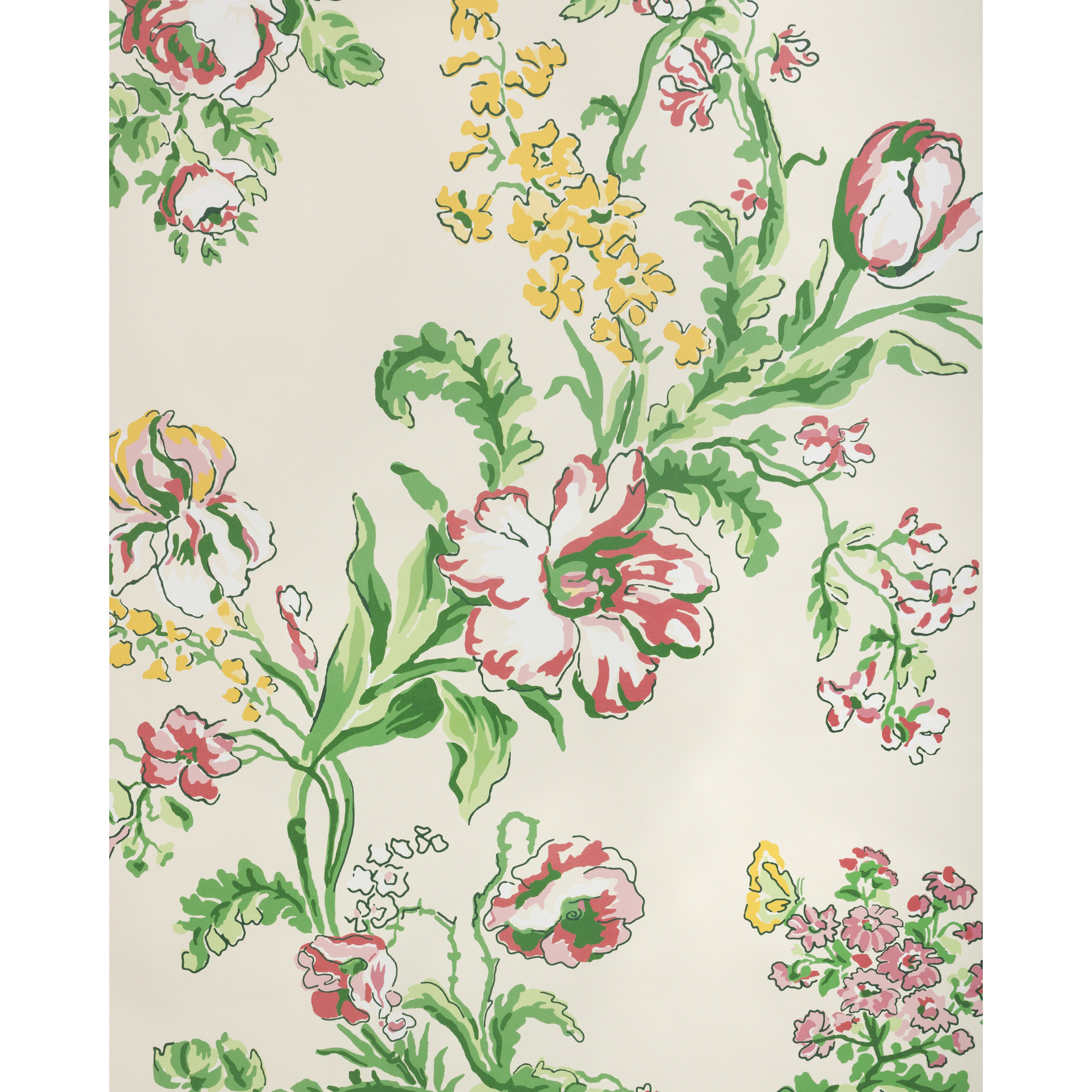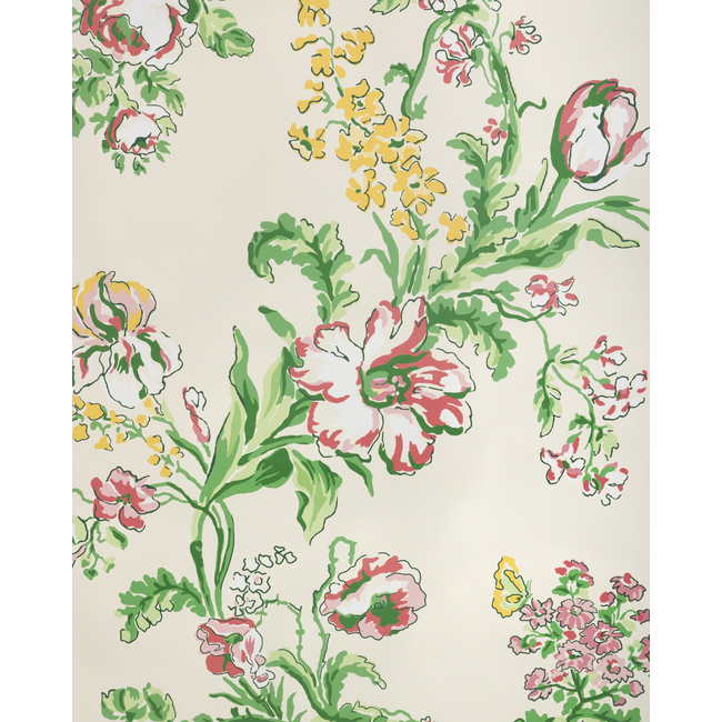 Originally introduced into the Brunschwig collection as a fabric in 1973, the lovely design depicting roses and other flowering plants was a modern interpretation of late 18th Century paper archive originally intended as a woven brocade fabric. Also available as a coordinating fabric.