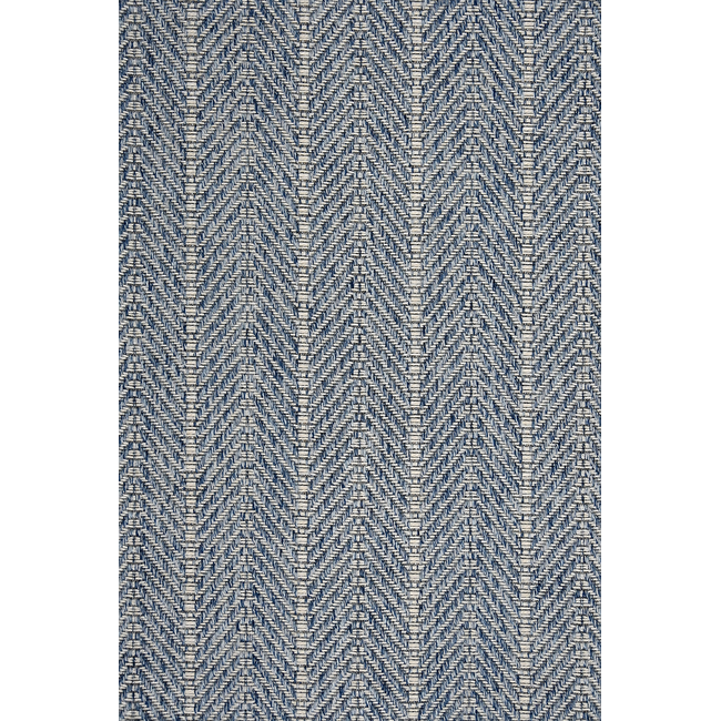 A beautifully woven textured carpet with a striking chevron design, just as at home outdoors as it is indoors. Made in a durable polypropylene material with cool color tones that recall easy summer days, it is as simple to clean as it is visually striking. Rugs are finished with machine serging, as shown on sample. Fabricated area rug ships within 14 business days from receipt of paid order on stocked goods.