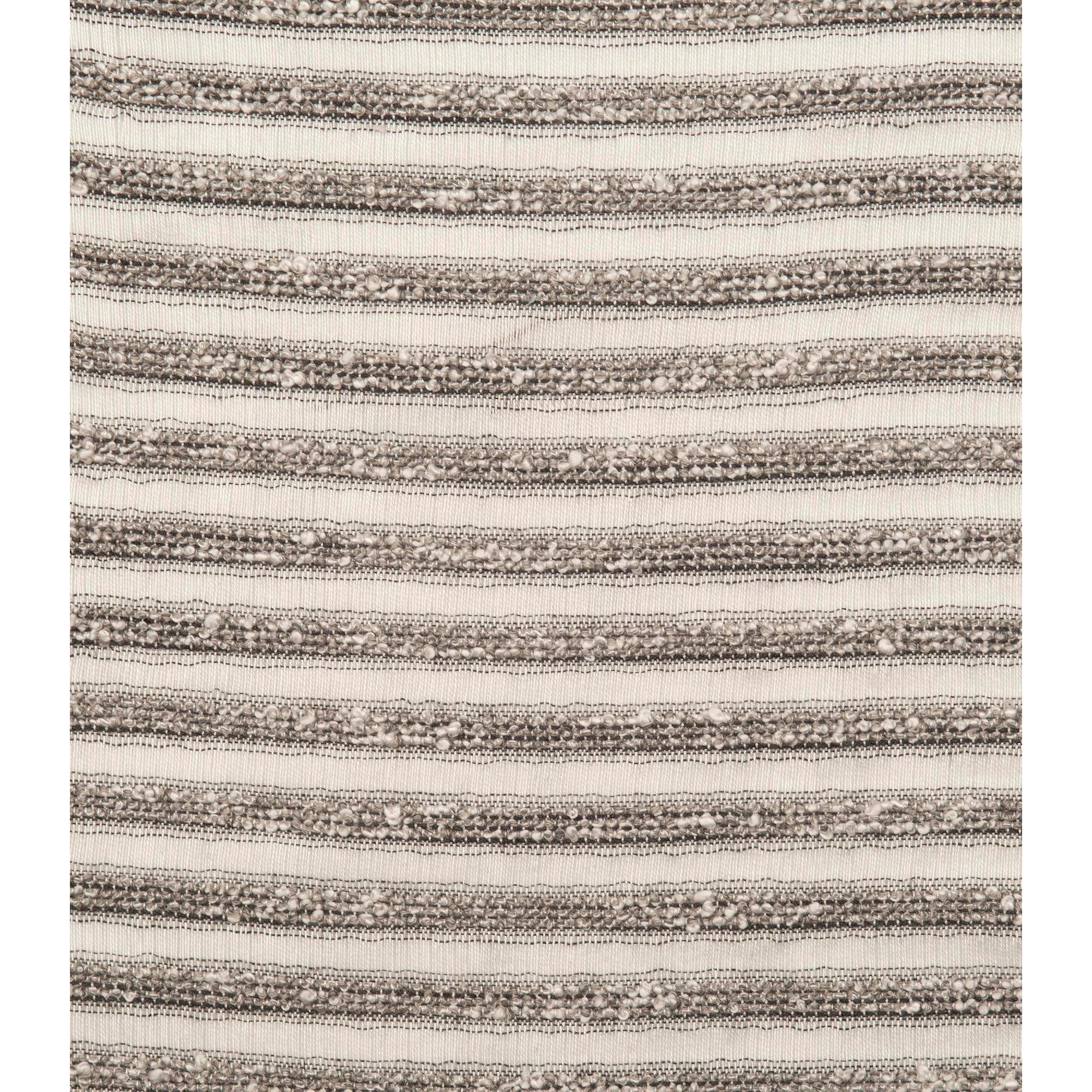 Horizontal stripes feature a pebbly boucle yarn which adds weight and creates a stimulating rhythm within an indoor/outdoor sheer.