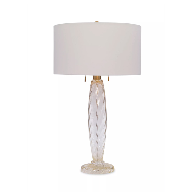 Hollow, handblown Venetian glass lamp with brass hardware. Meaning "wave" in Italian, the Ondoso's column is characterized by gentle waves providing a subtle sense of movement. 7 feet of beige rayon-covered twisted cord exits at base. 2 pull chains. 2 Bulbs. Type A19. Medium base. 2 bulbs - A19 Medium base with maximum 75 watts. Shades sold separately; shown here in Donghia's Cylindrical Shade 18 in Sabrina Creme (DG-80032.020BR.0) . UL listing available by special request with upcharge.
