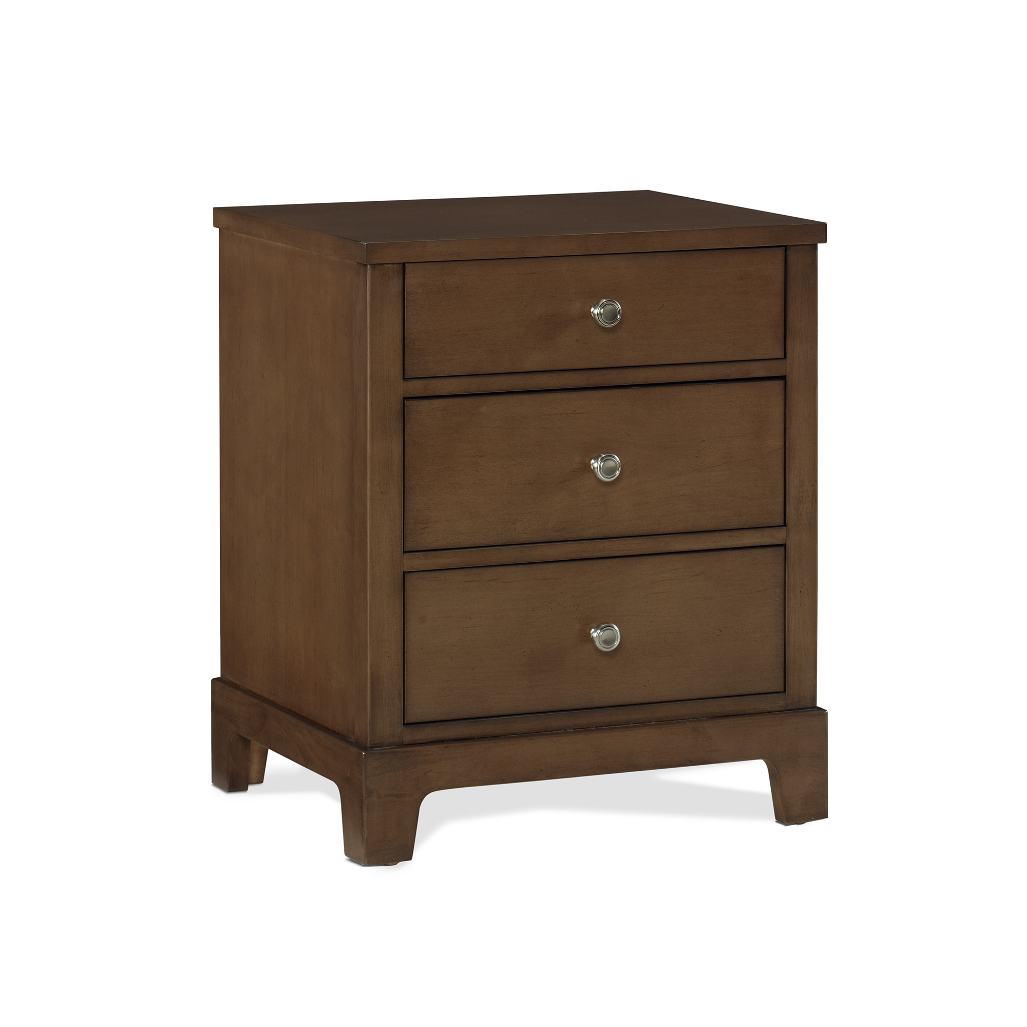 3 Drawer Maple Nightstand, Standard with black knob.